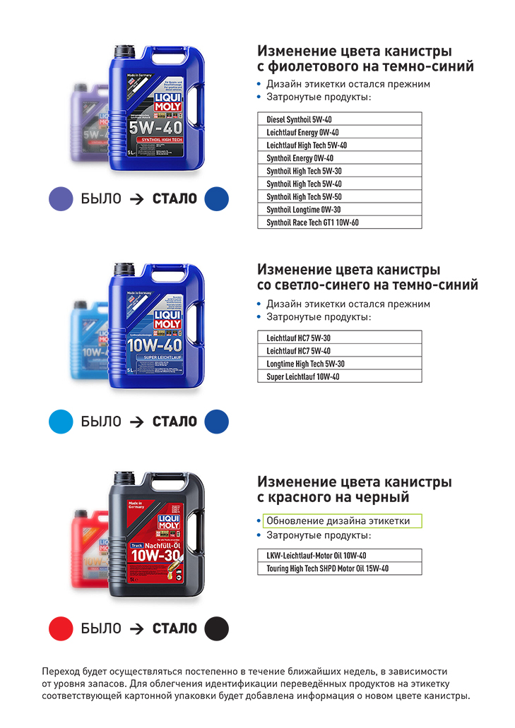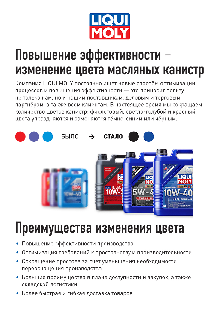 Изменение цвета масляных канистр ЛИКВИ МОЛИ (LIQUI MOLY)